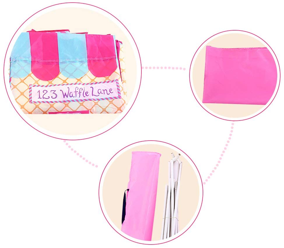 DEVELOP IMAGINATION & CREATIVITY: The pink princess play castle decorated with birds, cakes, ice creams, and other cute patterns, provides kids a real game space to role play with friends, playmates, develops the imagination and creativity from it, this is also what parents hope.
